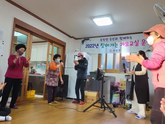 ‘찾아가는 가요 교실’은 교육과 문화를 접하기 어렵고 사회 활동 체험 범위가 좁은 농촌 지역 주민들을 위해 문화적 기회를 제공하고 일상생활에 활력을 불어넣을 수 있는 프로그램으로, 지역주민 50여 명이 참석한 가운데 그동안 코로나19로 몸과 마음이 지친 어르신들이 신명 나는 노래로 스트레스를 해소 및 친목을 도모하는 시간을 가졌다.