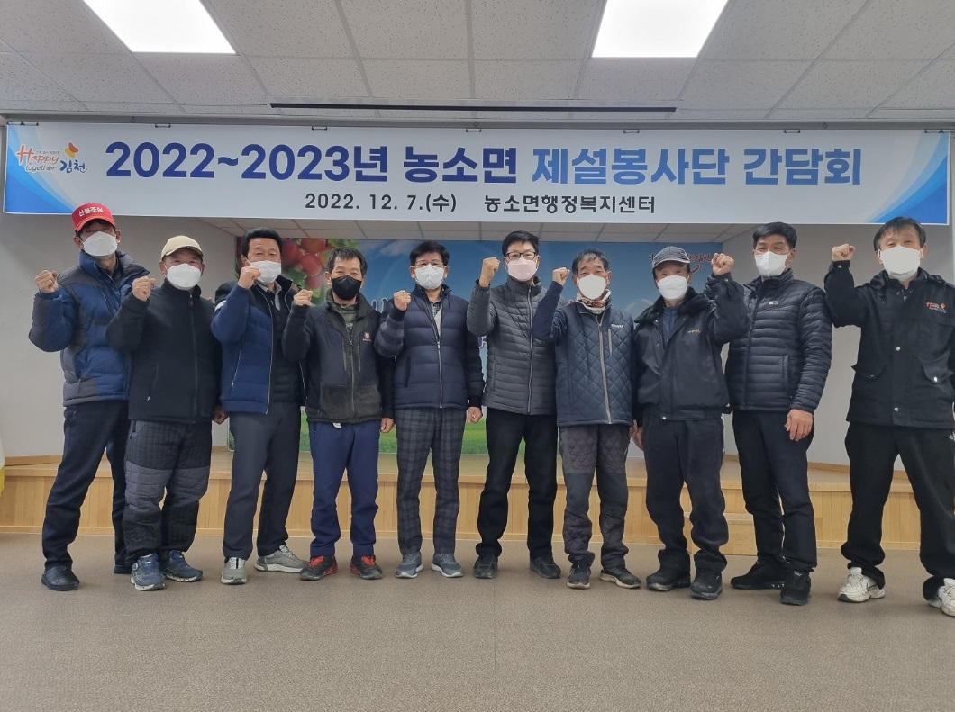 농소면 제설봉사단은 마을주민 13명으로 김천시 최초로 구성되었으며 겨울철 폭설시 트랙터에 제설 삽날을 부착해 9개 주요노선, 상습 결빙 예상노선, 버스 통행노선 등 약 30km의 제설작업에 나선다.
