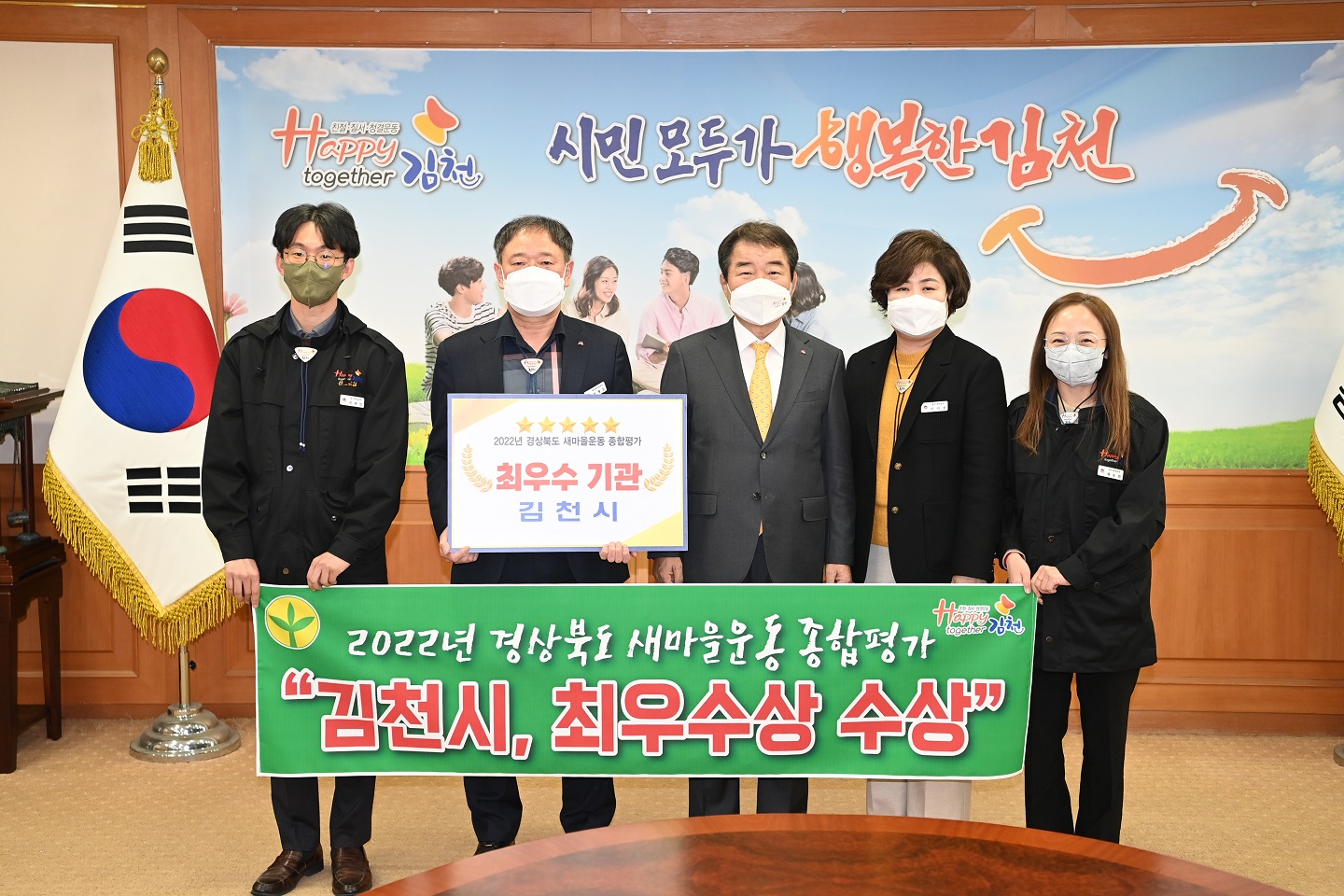 | 김천시(시장 김충섭)는 12월 9일 문경에서 열린 경상북도 새마을지도자대회에서 ‘2022년 경상북도 새마을운동 종합평가 최우수 기관상’을 수상했다고 12월 9일 밝혔다.
