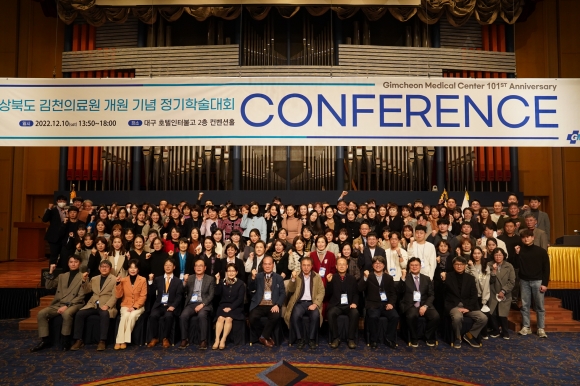 | 김천의료원은 지난 12월 10일 대구 인터불고호텔에서 국내 저명 의학 전문가들을 초빙하여 정용구 김천의료원장 및 의료원 임직원들과 경북도의회 최태림 행정보건복지위원장과 박선하 부위원장을 포함한 외부인사가 참석한 가운데 ‘개원기념 정기학술대회’를 개최하였다. 이번 학술대회는 김천의료원 개원 101주년을 맞이하여 공공의료 발전과 지역민의 건강증진을 돕고 경상북도민과 함께하는 새로운 미래를 위한 청사진을 이야기하고자 마련되었다.