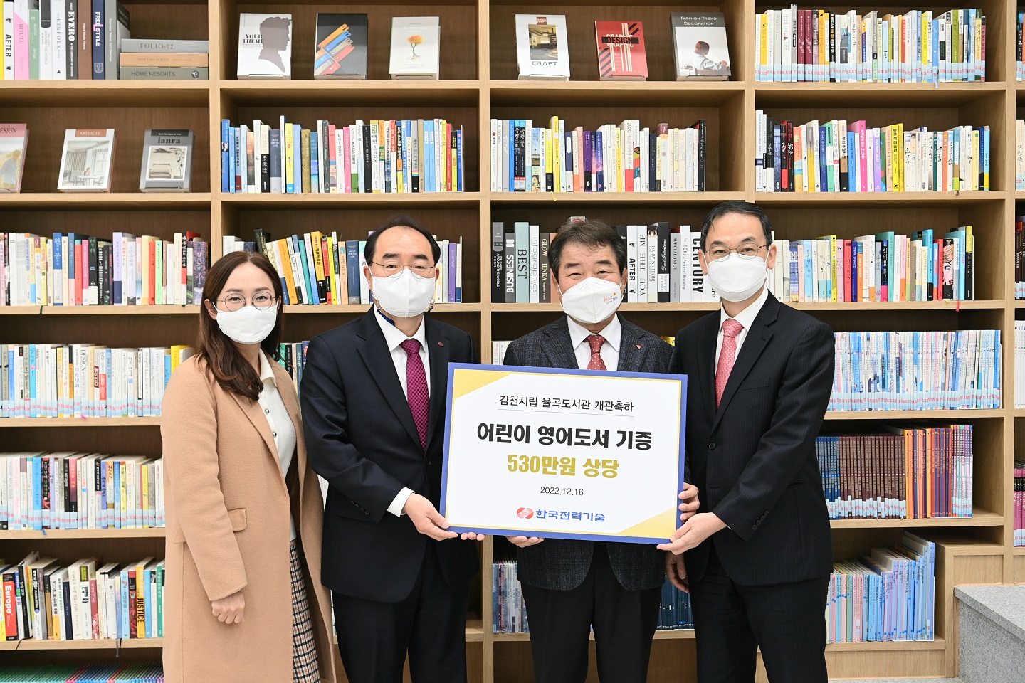 | 김천시립도서관(관장 신동균)에서는 지난 12월 16일 한국전력기술(주)로부터 영어도서 300여권 530만원 상당의 도서를 기증받았다고 밝혔다.