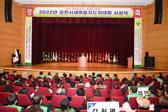 | 김천시새마을회(회장 임영식)는 12월 20일 김천시문화예술회관 대공연장에서 김충섭 김천시장, 이명기 김천시의회 의장 및 시의원, 이우청, 최병근 경상북도의회 의원 등 관내 기관단체장을 비롯한 새마을지도자와 가족 등 700여명이 참석한 가운데 2022 김천시새마을지도자대회를 개최했다.