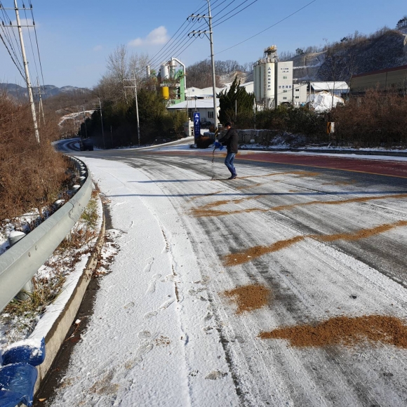 구성면은 강설에 대비해서 면에서 보관하고 있는 염화칼슘 100포와 모래주머니를 급경사 지구와 결빙취약지를 중심으로 마을과 농가주들에게 사전 배부했다.
