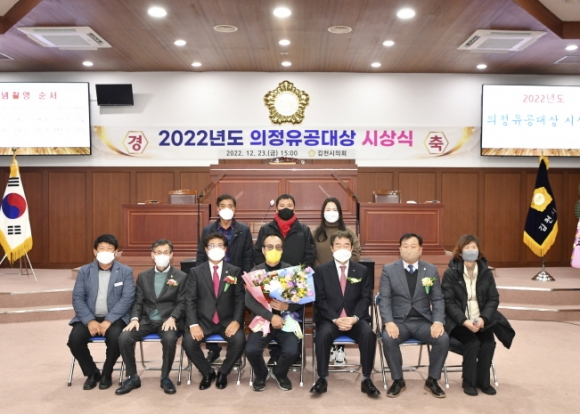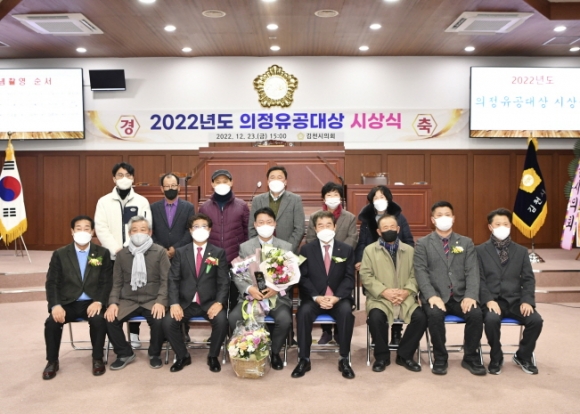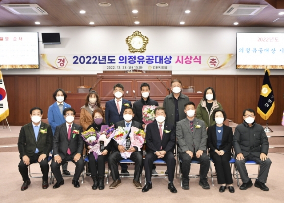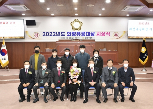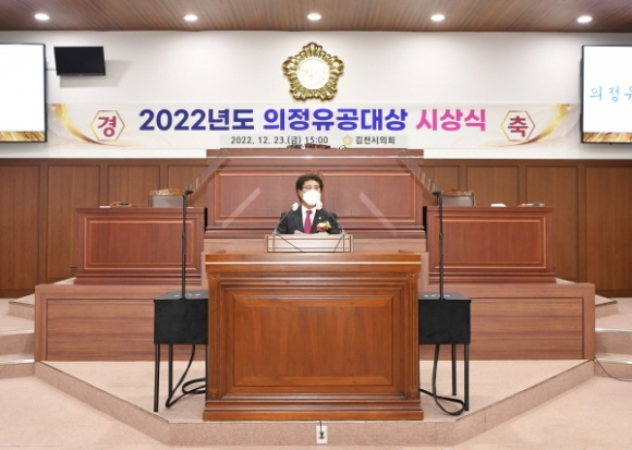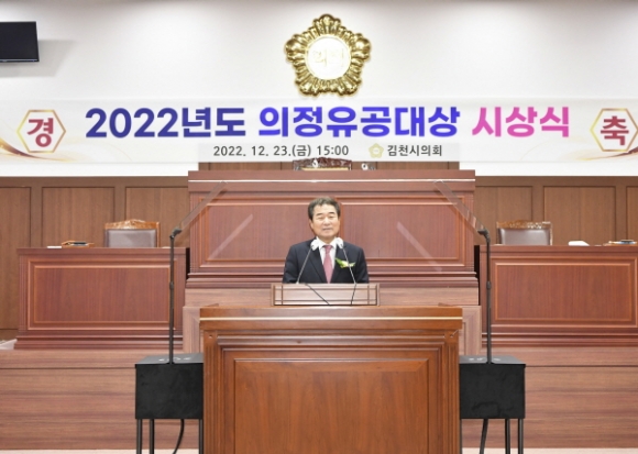 |  | | | ⓒ 김천내일신문 | | 김천시의회(의장 이명기)는 12월 23일 김천시의회 3층 본회의장에서 2022년 의정유공대상 시상식을 개최했다.