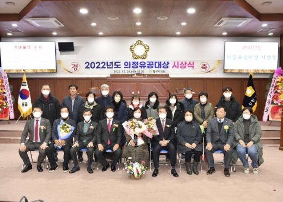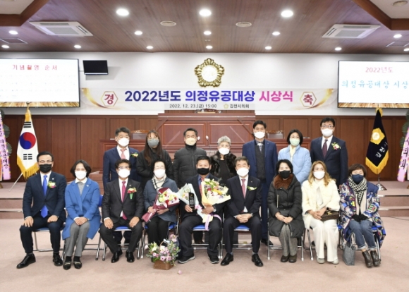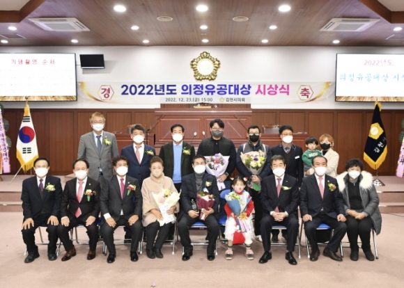 의정유공대상은 한 해 동안 주민화합과 시민복리 증진을 위해 헌신하고 자치의정 활동에 적극 참여하여 열린 의정 실현에 기여한 시민들의 공적을 기리기 위한 상으로, 각 읍면동장의 추천을 받아 김천시의회 공적심사위원회 심사를 거쳐 22명의 수상자와 효심이 깊은 특별상 수상자 2명 등 총 24명이 선정됐다.