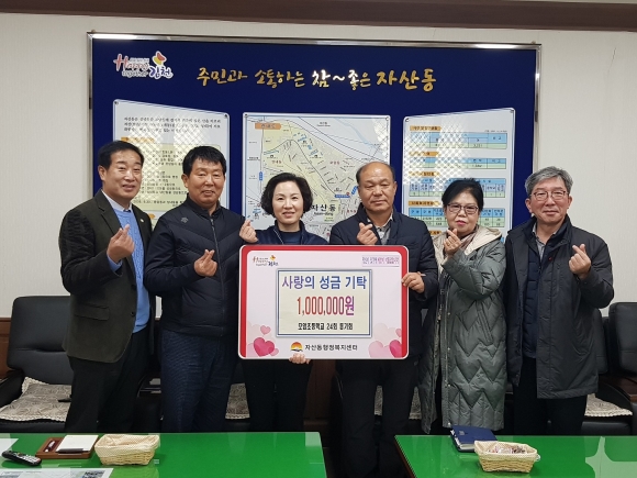 편동현 회장은 “모암초 24회 동기들이 연말을 맞아 어려운 이웃들에게 작은 나눔을 실천하고자 뜻을 모았다”며 “큰돈은 아니지만 자산동 지역의 독거노인과 장애인 등 소외된 이웃들에게 조금이나마 도움이 될 수 있기를 바란다”고 밝혔다.