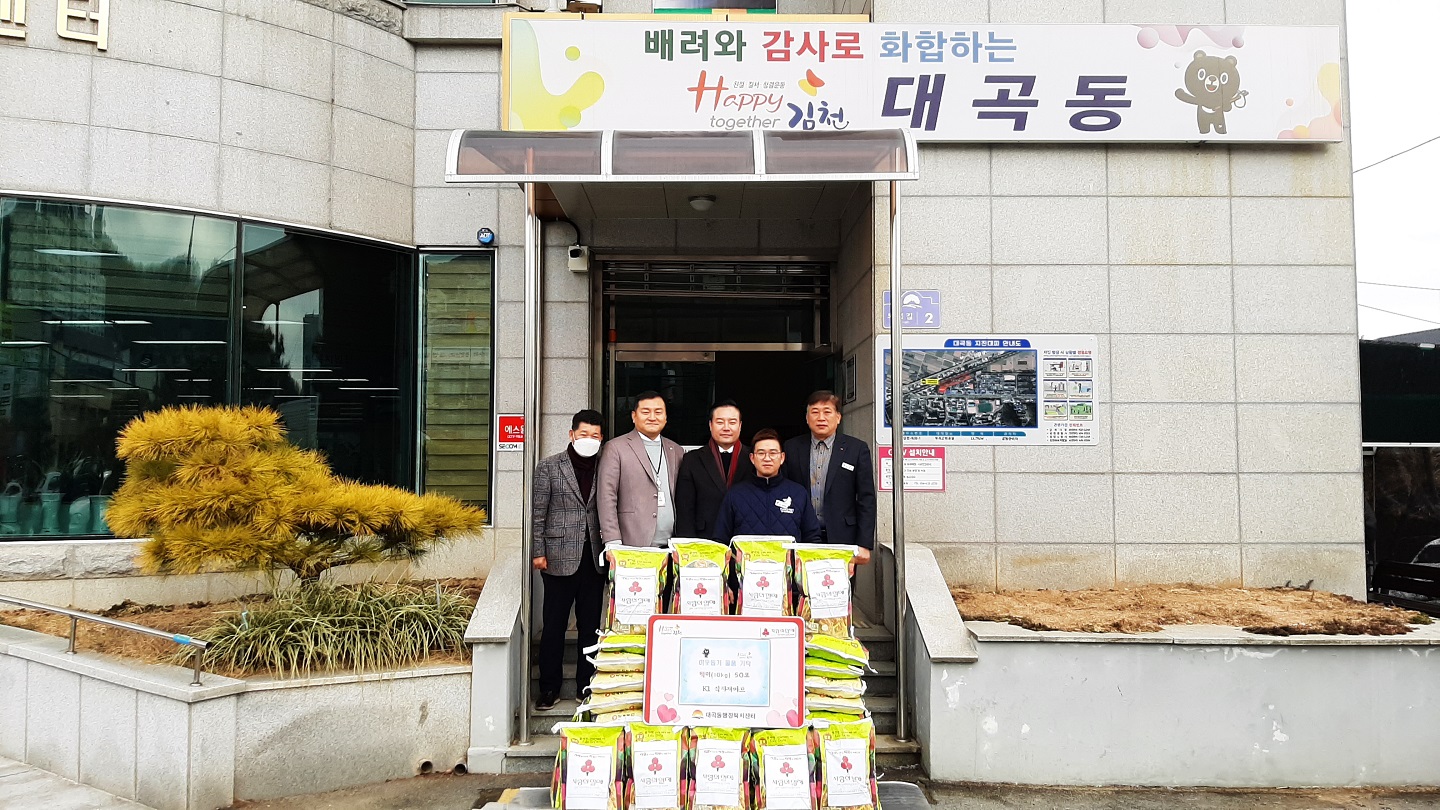 | 김천시 백옥동에 소재한 K1식자재마트(대표 김종호)에서는 12월 26일 김천시 대곡동을 방문하여 백미(10kg) 50포를 사회복지공동모금회를 통해 기탁했다.