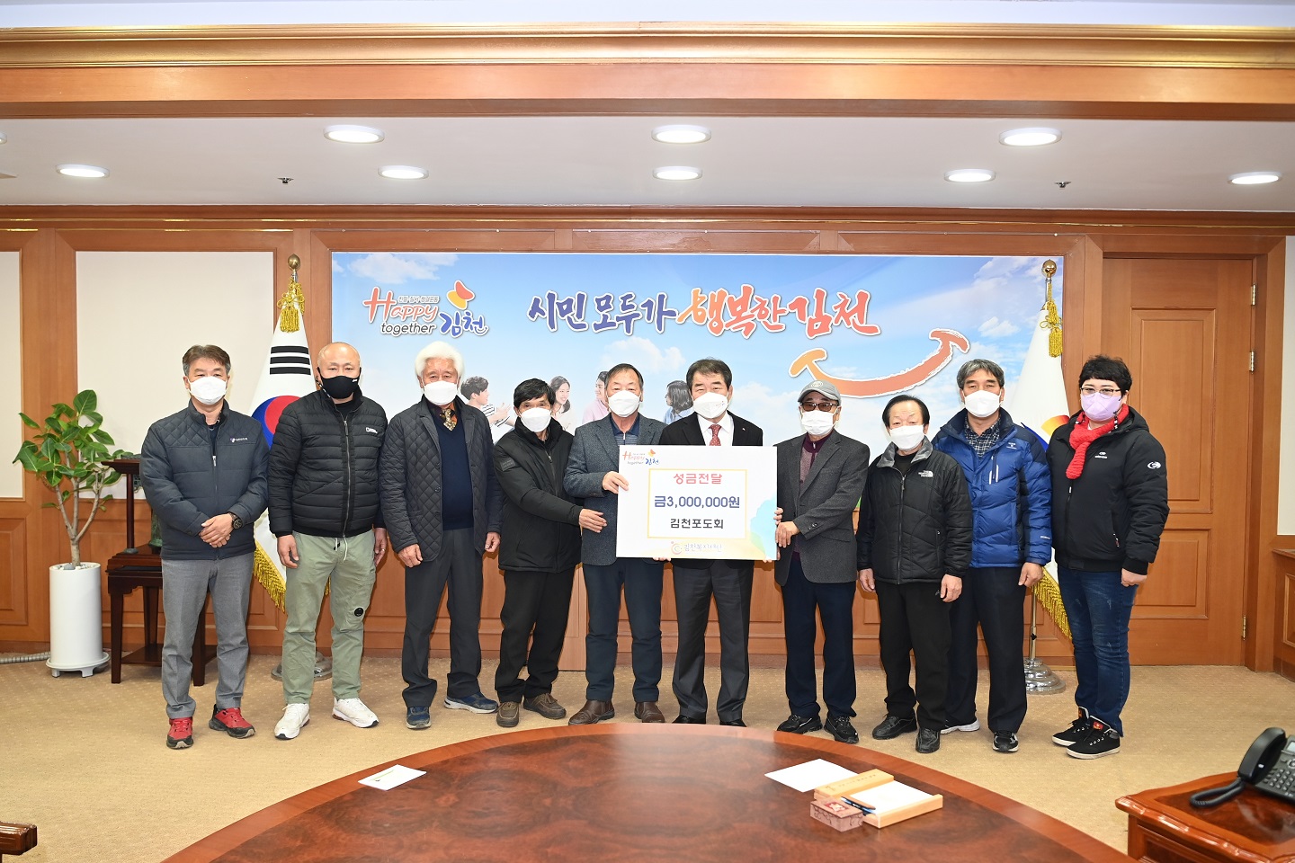 | 김천포도회는 지난 12월 27일 김천시청을 방문하여 김천복지재단에 성금 300만원을 기탁했다.