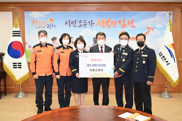 김천소방서 의용소방대연합회 김천시에 성금 전달