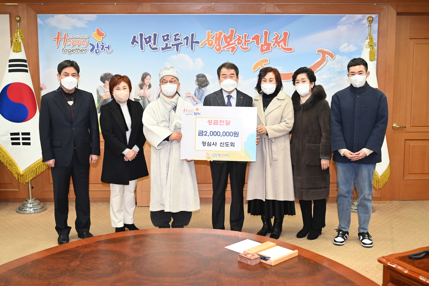 | 정심사 신도회(신도회장 황영숙)는 12월 29일 지역의 어려운 이웃과 함께 하자는 마음으로 김천복지재단에 성금 200만원을 기탁했다.