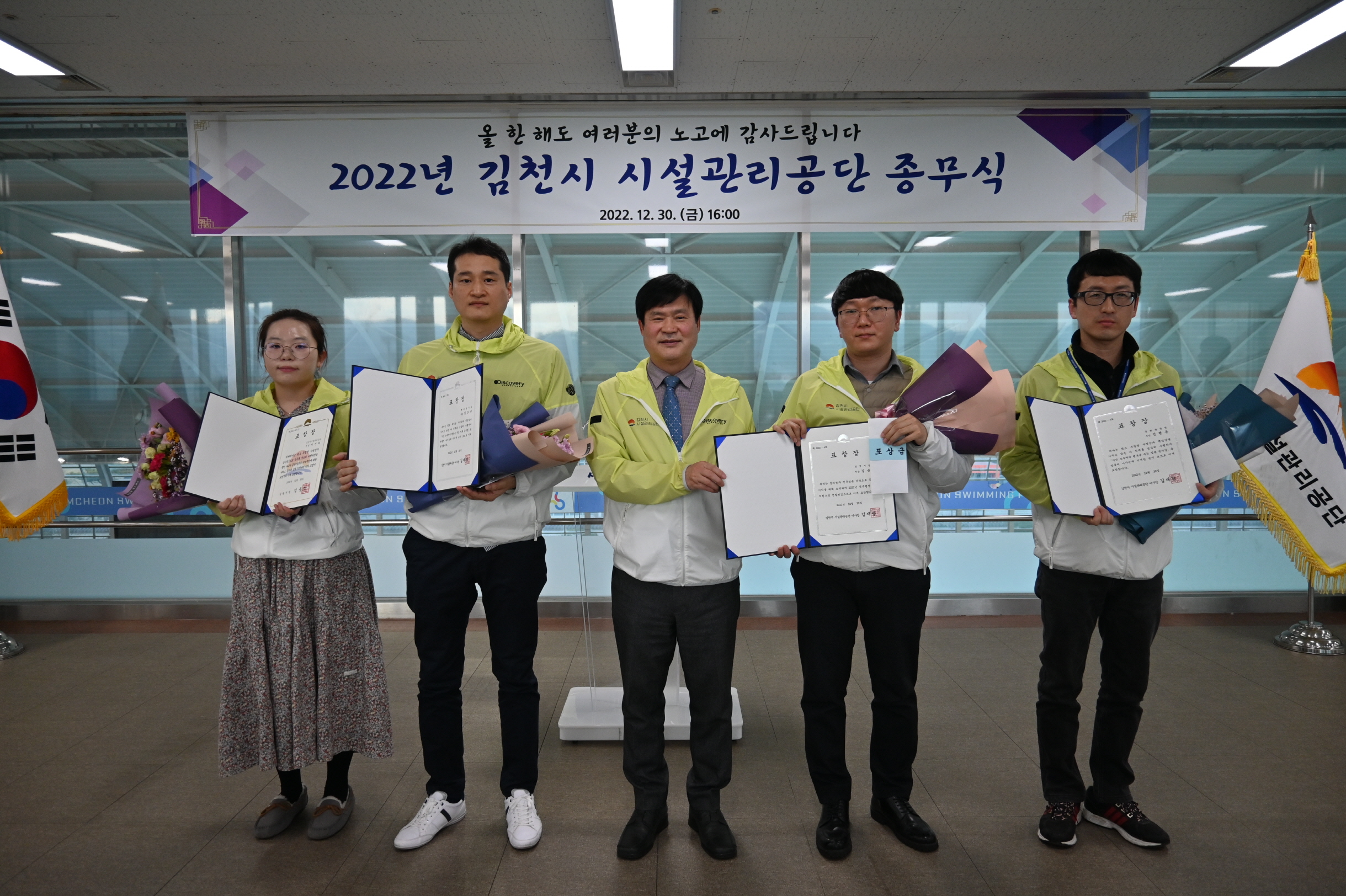 이날 종무식에서는 올 한 해동안 투철한 사명감과 봉사정신으로 업무에 임해준 직원들을 격려하기 위해 우수직원을 표창하고 김재광 공단 이사장의 송년사 등으로 진행되었다. 김충섭 김천시장의 우수 근로자 표창, 적극행정 우수직원 표창 등 총 5명의 직원이 표창장을 수여하였다.