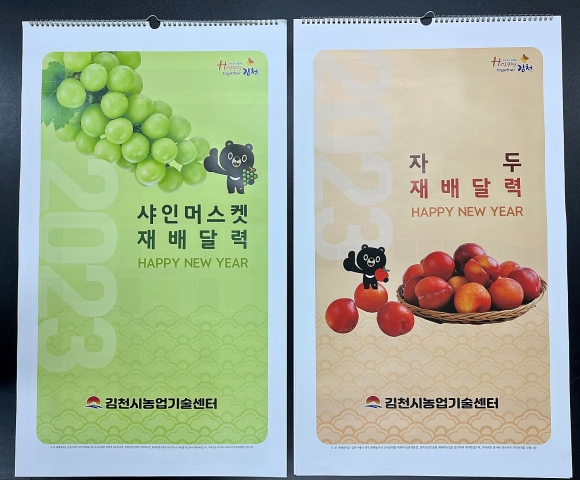 김천시 관계자는 “이번 달력은 2022년 달력에 이어 두 번째로 제작 배부 하고 있으며 고품질 샤인머스켓, 자두 생산에 도움을 주기 위해 제작했다.”라고 말했다. |