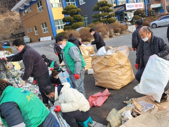 | 김천시 감문면 새마을지도자남녀협의회(회장 박갑용, 부녀회장 강인희)는 12월 30일 농약빈병 분류 작업을 실시했다.