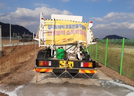 | 김천시(시장 김충섭)는 전국적으로 고병원성조류인플루엔자(AI) 발생이 급증함에 따라 관내 감천변 등 철새도래지에 방역을 실시했다.