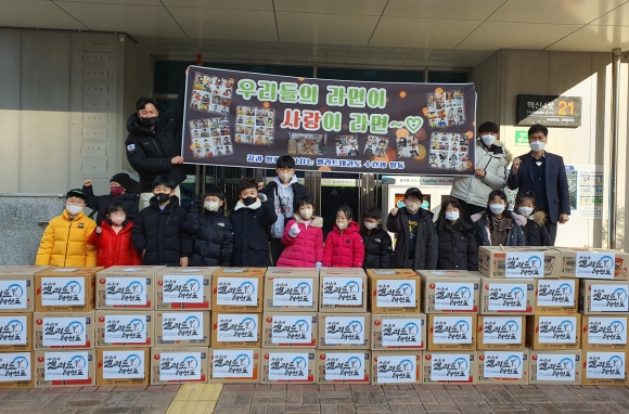 엘리트태권도장에서 기부한 라면 40박스는 지난 12월 한 달 동안 아이들이 십시일반 모아 마련한 것으로 율곡동행정복지센터에서는 소외되는 이웃이 없도록 관내 독거어르신, 장애인 등 취약계층에게 전달할 계획이다. |