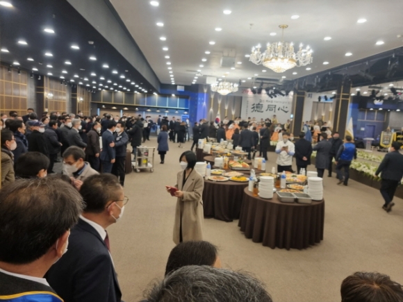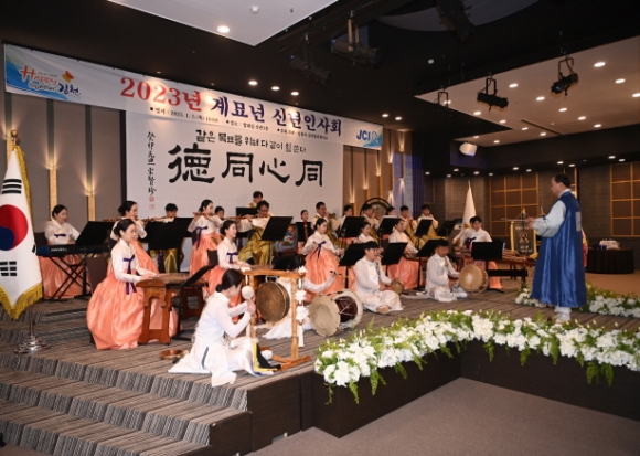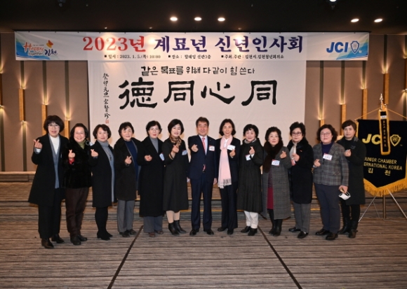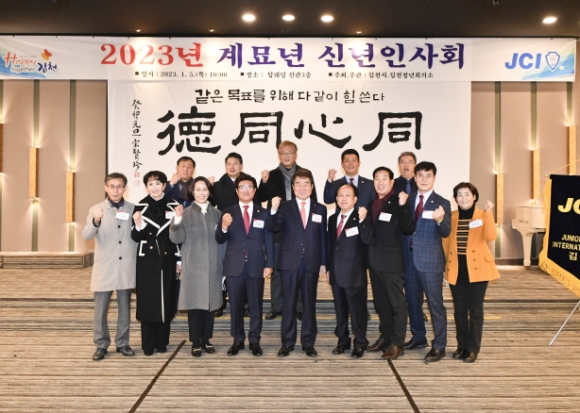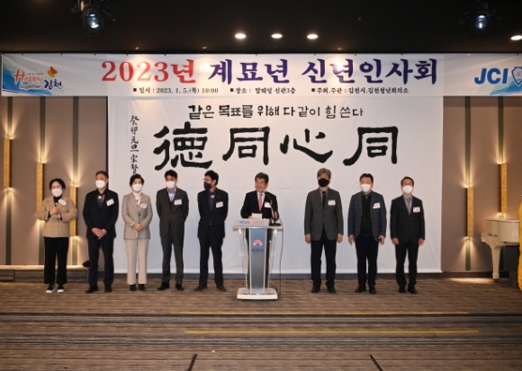 |  | | | ⓒ 김천내일신문 | | 김천시는 김천청년회의소 주관으로 1월5일 탑 웨딩 타운에서 2023년도 계묘년 신년 인사회를 가졌다. 이날 송언석 국회의원, 김충섭시장, 경북도의원, 이명기 시의회 의장과 시의원, 이부하 노인회장, 서정희 체육회장, 안용우 상공회의소회장, 윤옥현 김천대학교 총장, 박보생 전 김천시장, 배낙호 김천상무대표, 시설관리공단 김재광이사장을 비롯해 홍성구 부시장, 시청 실국장들이 참석했다. 신년 인사회는 同心同德이라는 케치 플레이어를 내걸고 김천시립국악단의 사전공연으로 진행되었으며 기관단체장들의 인사말과 시민의 안녕을 기원하는 케익 절단식 수순으로 진행됐다. |  | | | ⓒ 김천내일신문 | |