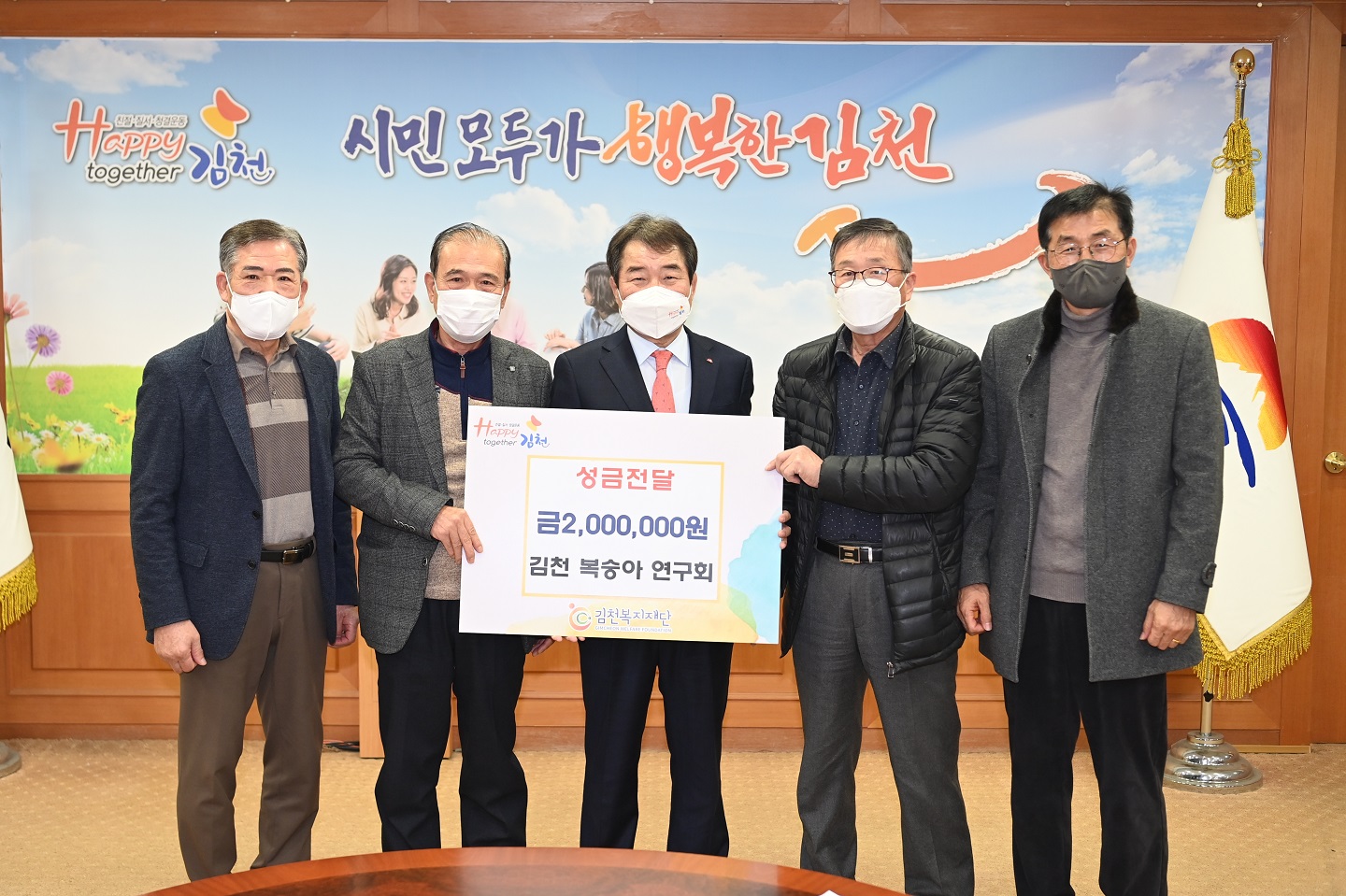 | 김천복숭아수출연구회(회장 최민용)는 지난 1월 5일 김천시청을 방문해 지역의 어려운 이웃과 희망을 나누고자 불우이웃 돕기 성금 200만원을 기탁했다.