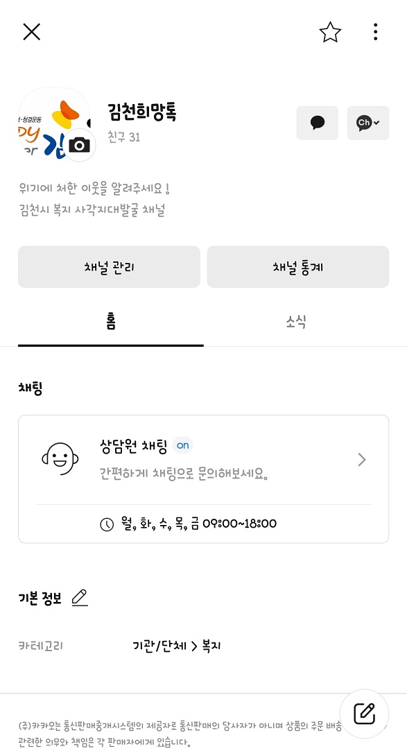 | 김천시(시장 김충섭)에서는 복지 사각지대 발굴 및 지원을 위해 비대면 복지상담 채널인 『김천 희망톡』을 지난해 9월 개설하여 운영하고 있다.