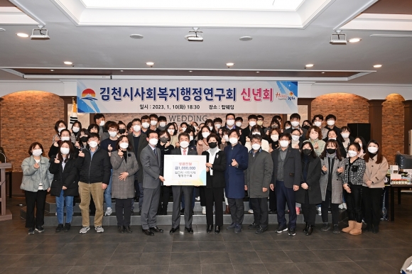 | 김천복지재단(이사장 김충섭)에서는 지난 1월 10일 김천시사회복지행정연구회 회원들이 계묘년을 맞아 새롭고 힘차게 시작하자는 의미로 신년회를 개최하면서 성금 100만원을 전달받았다고 밝혔다.