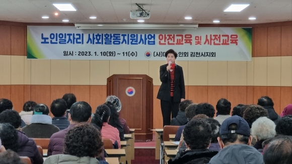 | 김천시노인지회(지회장 이부화) 에서는 1월 10일과 11일 양일간 김천시 노인지회 2층 대회의실에서 공익형 노인일자리 참여자 535명(깔끄미 사업)을 대상으로 노인일자리 참여자 안전교육을 실시했다.