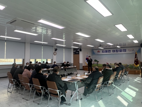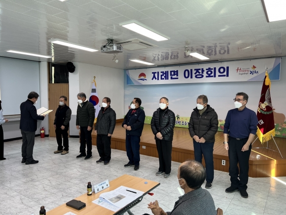 | 지례면 행정복지센터(면장 전현철)는 1월 12일 지례면 행정복지센터 2층 회의실에서 이장 18명과 시의원 및 기관장 등이 참석한 가운데 1월 이장협의회 정례회의를 개최했다.