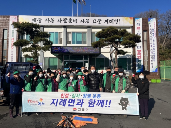 | 지례면 새마을협의회(회장 전익수·김명주)는 설 명절을 앞두고 지례면을 쾌적하고 깨끗한 마을로 만들고자 지난 1월 16일 국도변(지례면 교리 ~ 여배리)에서 각종 쓰레기를 수거하는 대대적인 청결운동을 추진했다.