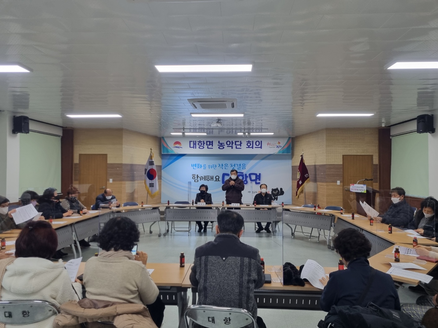 | 김천시 대항면 농악단(단장 최재춘)은 1월 16일 면 행정복지센터 2층 회의실에서 신년회의를 개최하고 오는 2월 2일부터 3일까지 이틀에 걸쳐 ‘정월대보름 지신밟기’ 행사를 가지기로 결정했다.