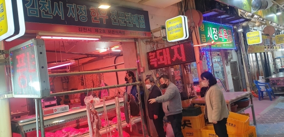 이날 행사는 오전 11시부터 감문면 직원이 참석해 물가상승 등으로 침체된 지역경제 활성화를 위해 시장을 둘러보며 김천사랑상품권을 이용해 찬거리 등을 구매하고 점심식사를 했다.