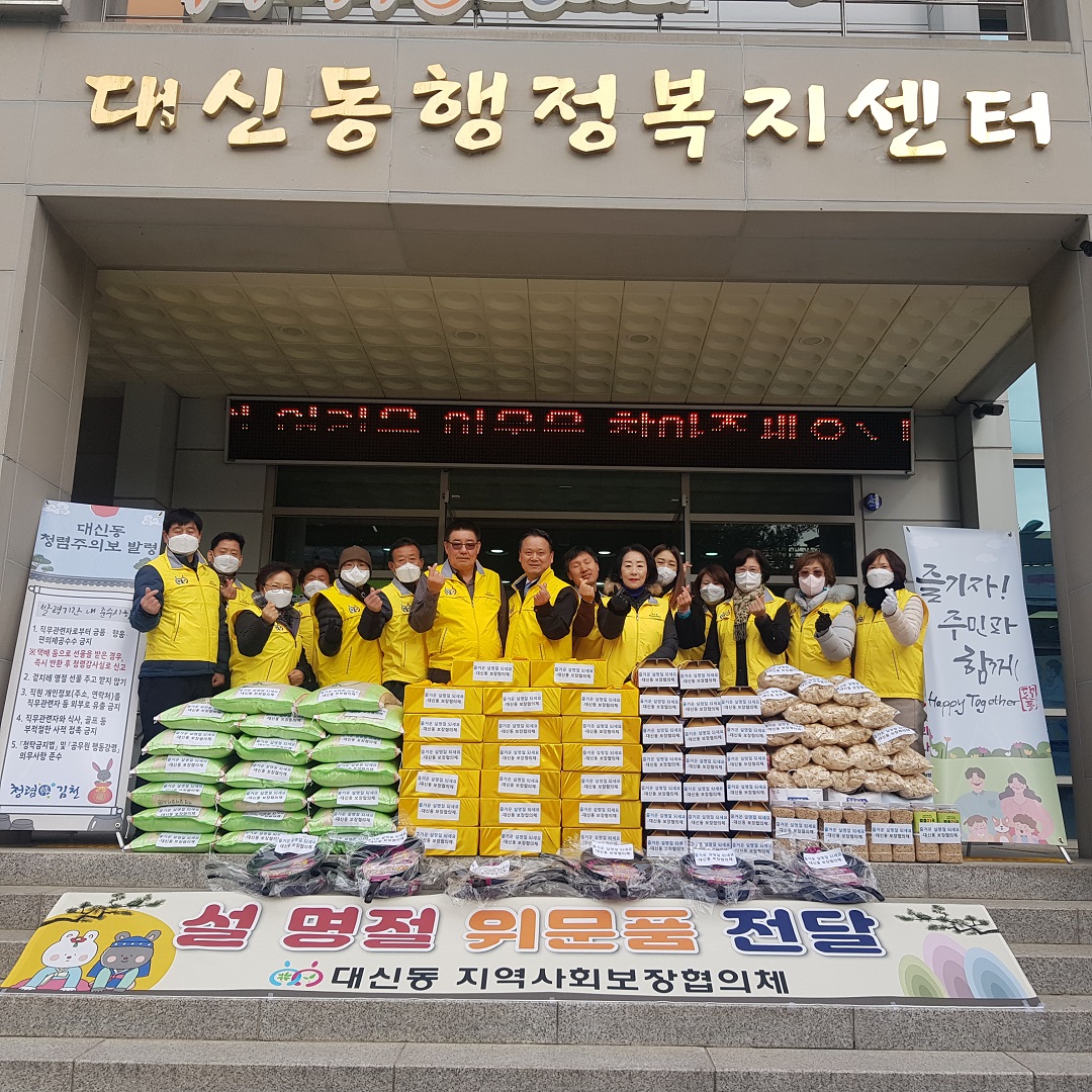 회의 결과에 따라 대신동 지역사회보장협의체는 설 명절을 앞둔 1월 17일 이웃사랑 나눔 실천을 위해 관내 소외이웃 20가구를 위한 명절 위문품 전달식을 가졌다.