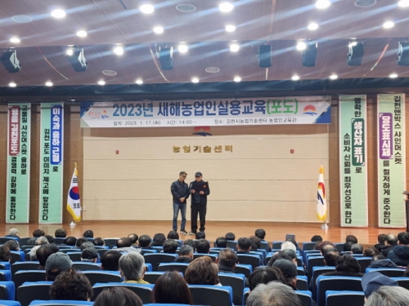 | 지난해 영농현장에서의 문제점을 해결하고 새해 영농설계를 위한 2023년 새해농업인 실용교육이 12월 28일을 시작으로 포도, 애플망고 등 7개 품목 17회에 2,400여명이 참석한 가운데, 지난 17일 대단원의 막을 내렸다.