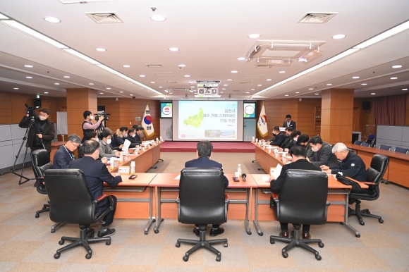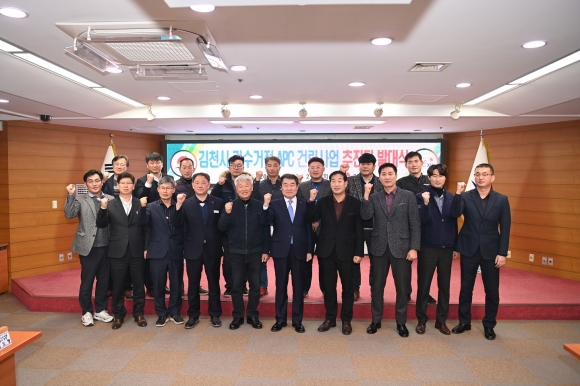 | 김천시(시장 김충섭)는 1월 20일 김천시청 회의실에서 「과수거점 산지유통센터(APC) 건립사업 추진단」 발대식을 개최하여 국내 중남부권 과수 물류‧유통 거점으로 거듭나기 위한 위대한 여정의 시작을 대내외에 공표했다.