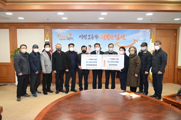 | 김천시 감천면체육회는 1월 20일 김천시청을 방문하고 ‘희망2023 나눔캠페인’성금 100만원과 함께 100만원 상당의 라면을 기탁했다. 라면은 감천면 저소득층에게 전달할 예정이다.