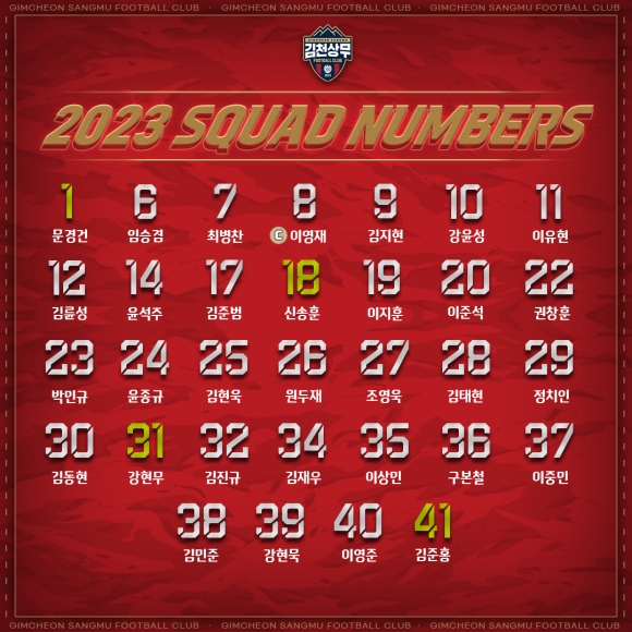 | 승격을 향한 도전에 나설 김천상무 32인의 배번이 공개됐다.