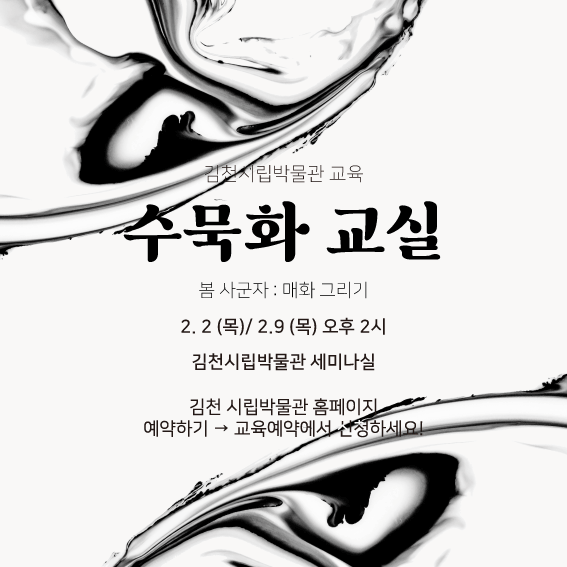 | 김천시시설관리공단(이사장 김재광)은 2월 중 김천시립박물관에서 시민들의 문화향유에 도움을 주기 위한 강좌인 『수묵화 교실』을 운영한다.