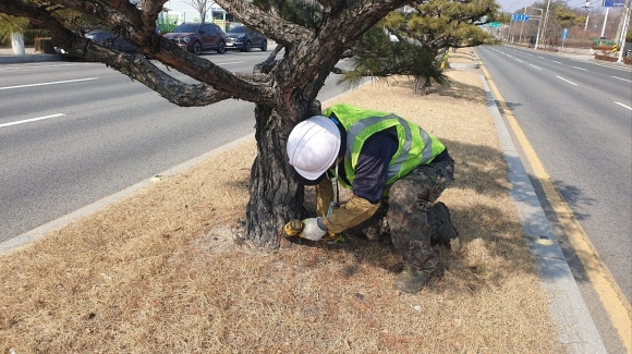 김천시, 중앙분리대 등 수간주사로 재선충방제에 총력