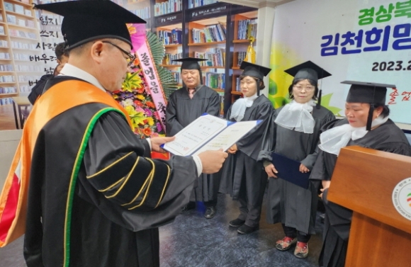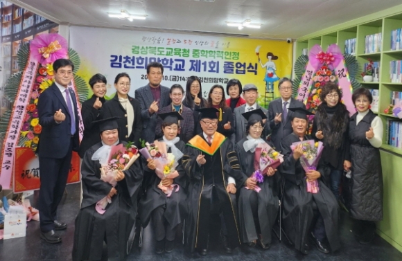 ‘김천희망학교’ 첫 졸업식에서 중학교 과정 학력을 (경상북도교육감) 인정받게 됐다. 졸업식 행사는 교사 학습습자들이 주체가 되어 기획하고 진행했으며 소리모듐(하모니카)강의덕, 오혜숙 선생님, 해피아코디언 조명옥 선생님 지휘로 축하공연으로 시작했다.