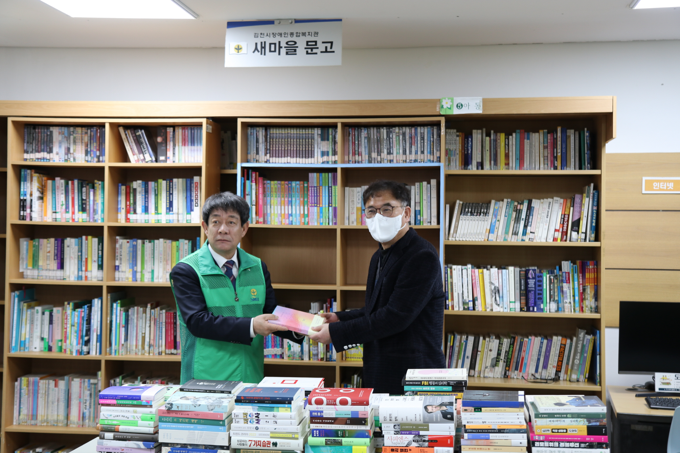 | 새마을문고 김천시지부(회장 이도희)는 2월 14일 김천시장애인종합복지관(관장 안민)을 찾아 도서 220권을 기증하였다.