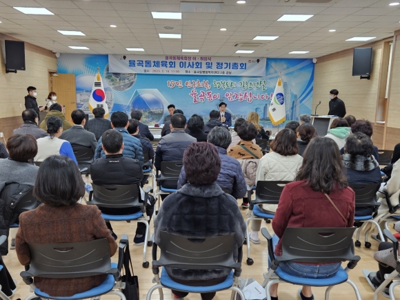 신임 조정구 율곡동체육회장을 축하하기 위해 도의원과 율곡동체육회 임원 및 대의원 60여명이 참석한 가운데, 신임 조정구 율곡동체육회장의 직전 김학술 율곡동체육회장의 노고에 대한 감사패 전달, 이·취임사, 임원소개, 율곡동체육회 이사회 및 정기총회 순으로 진행됐다.