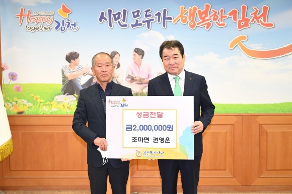 이번에 기부된 성금은 김천복지재단을 통해 관내 취약계층 지원 사업에 이용될 예정이다.