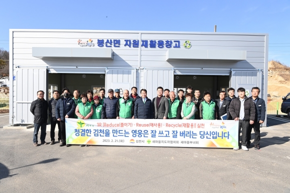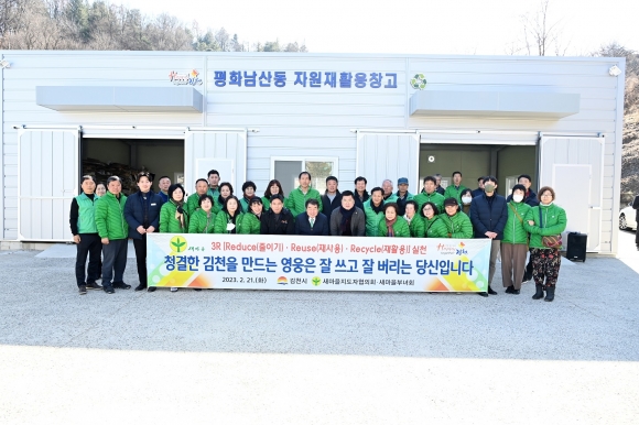 김천시 새마을협의회(회장 임상훈)에서도 읍면동별 자원재활용 창고시설 및 클린하우스를 진취적으로 활용하여 재활용가치가 높은 투명페트병, 우유팩 등을 분리배출하고 농촌 환경오염의 주요 원인으로 꼽히는 영농폐기물의 적절한 선별‧분리‧보관은 물론, 지역 주민들이 3R[(재사용(Reuse), 재활용(Recycle), 절약(Reduce)] 실천운동에 적극 참여할 수 있도록 재활용 배출요령 지도, 교육, 홍보 등에 앞장설 것을 다짐했다.