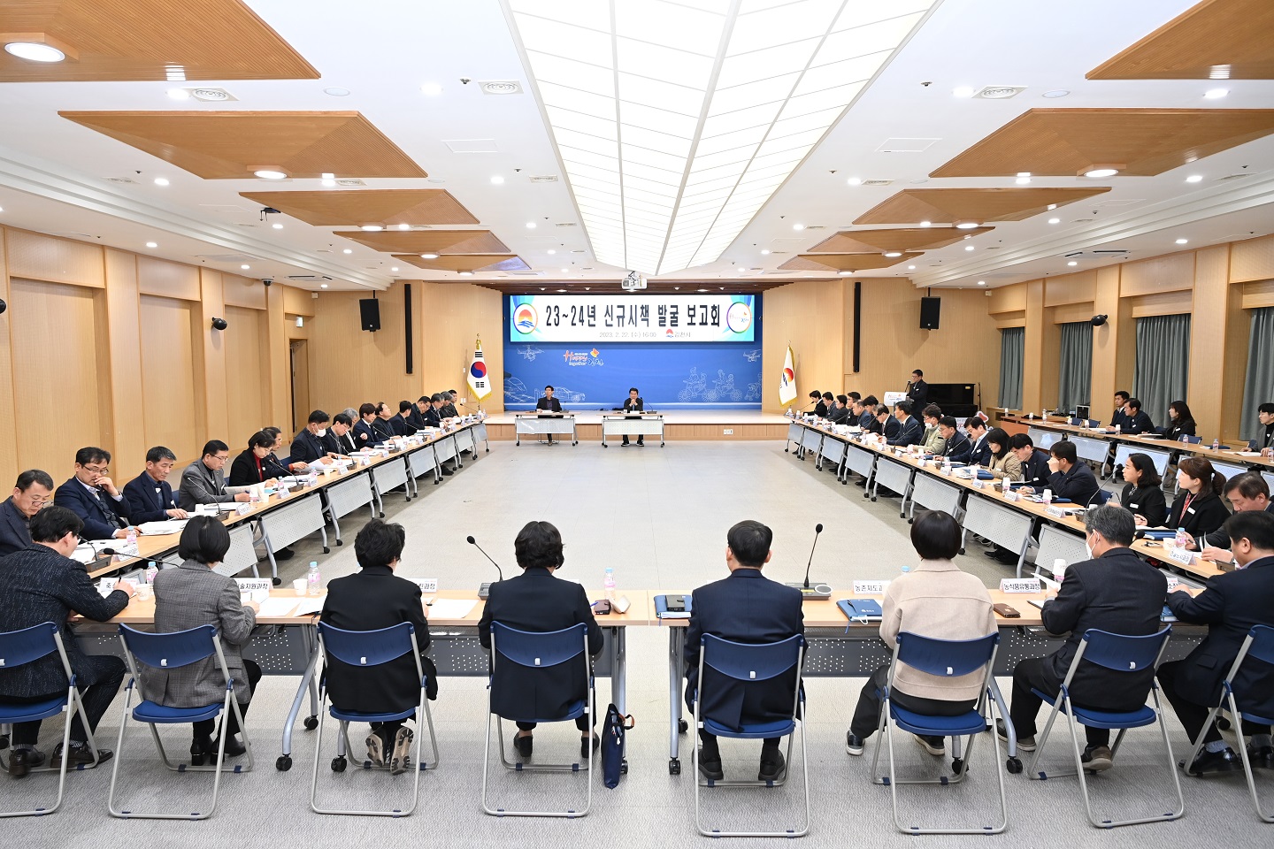| 김천시(시장 김충섭)는 지난 2월 22일 시청 강당에서 김충섭 시장 주재로 국·소장, 실·과·소장이 참석한 가운데 ‘23 ~ ‘24년 신규시책 발굴 보고회를 개최했다.