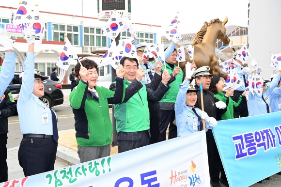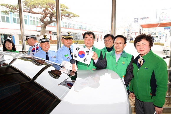 | 새마을교통봉사대 김천시지대(지대장 박태규)는 새마을회 회장단 및 교통봉사대원 20여 명이 참석한 가운데 3·1절을 맞이하여 택시와 일반 승용차 등에 태극기 500여 개를 달아주는 ‘차량용 태극기 달아주기’행사를 추진했다.