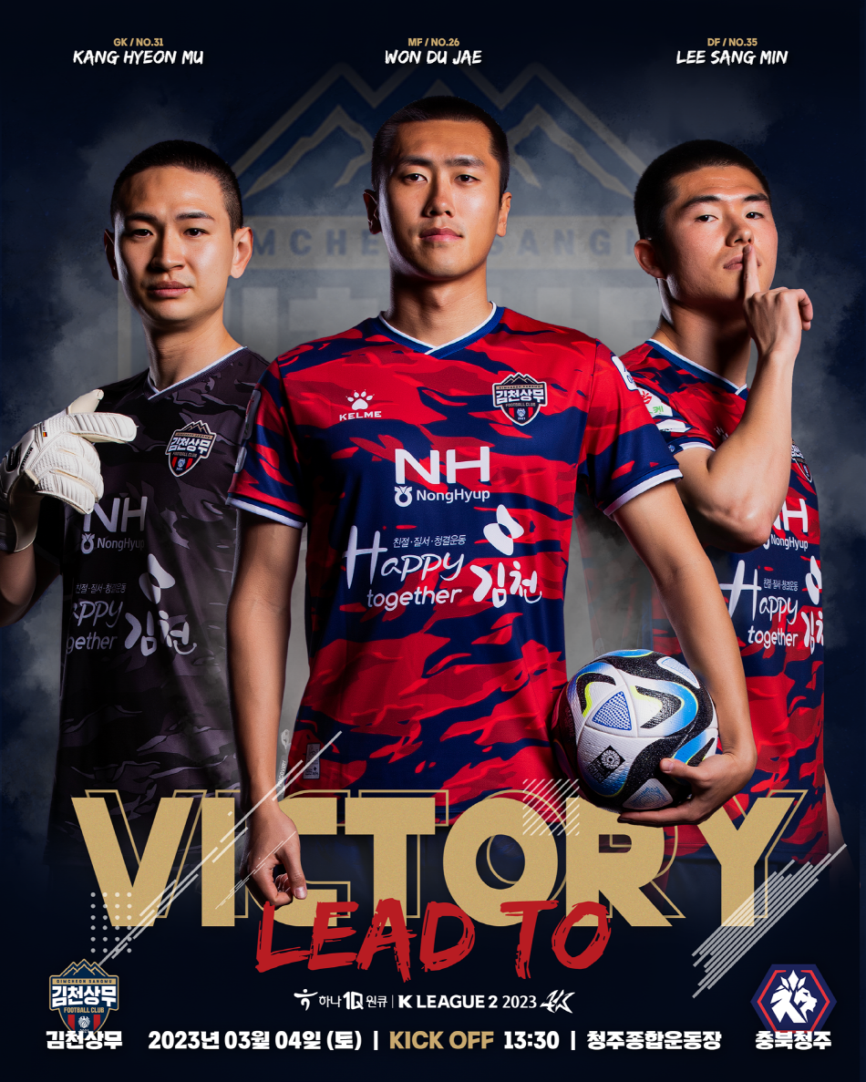 김천상무프로축구단이 3월 4일 오후 1시 30분, 청주종합경기장에서 충북청주FC(이하 청주)와 ‘하나원큐 K리그2 2023’ 2R 원정 경기를 치른다. 1R 충남아산 원정에서 극적인 역전승을 거둔 김천은 신생팀 청주를 꺾고 2연승을 노린다.