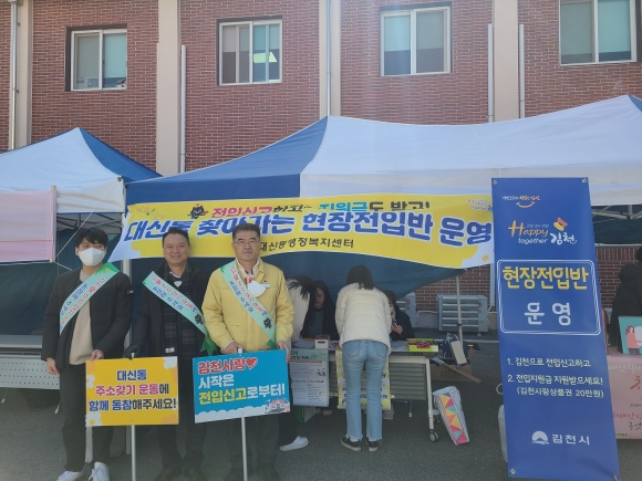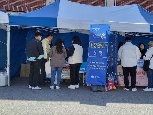 김천시는 「찾아가는 현장전입반」 부스를 통해 ‘꿈설계캠프’에 참가한 신입생을 대상으로 김천시 전입혜택을 홍보하고 현장에서 전입신고를 접수받았다.