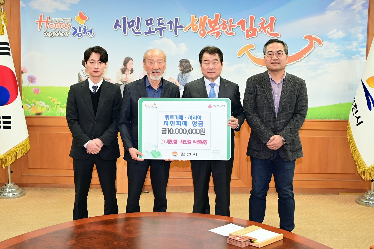 | 김천시(시장 김충섭)는 지난 3월 2일 ㈜새빗켐(대표 박민규)으로부터 튀르키예·시리아 지진피해 돕기 성금으로 1천만원을 전달받았다고 밝혔다.