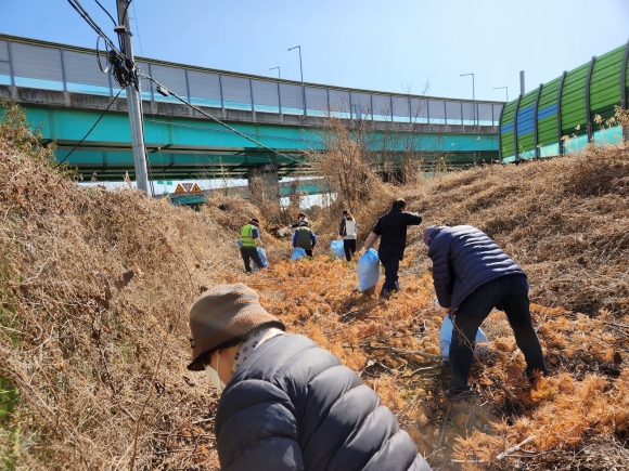 | 김천시 아포읍 새경회(회장 김금주, 새마을 경운대학교 졸업생 모임)은 3월 3일(금) 덕일한마음아파트 부근 철도부지에서 『양심지킴이 운동』환경정비를 실시했다.