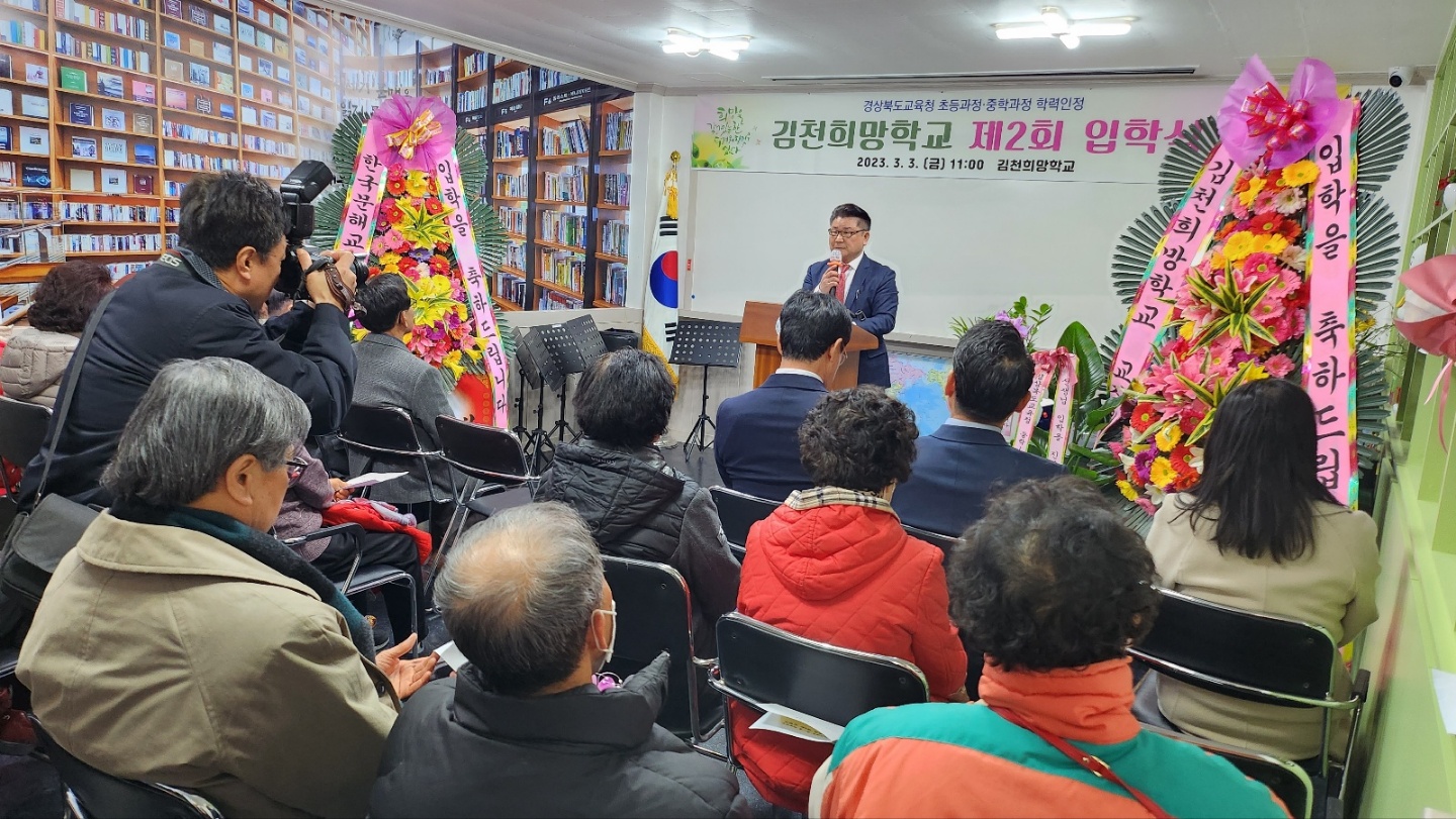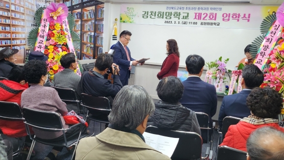 | 김천희망학교(교장 서명환)은 지난 3월 3일 제2회 성인문해교육 프로그램 초등과정 15명, 중학과정 15명의 입학식을 개최했다.