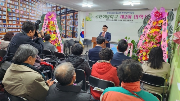 | 이날 입학식에서 서명환 교장은 김천시평생교육원의 사회적 지원과 개인의 신체적 건강을 정서적으로 학업을 지속 하다보면 건강한 마음을 가지신다고 응원을 보냈다. 김석조시의원, 김세호시의원, 이해정 김천시 평생교육원장 역시 입학하시는 어르신 한분 한분께 용기와 격려를 해주셨다.