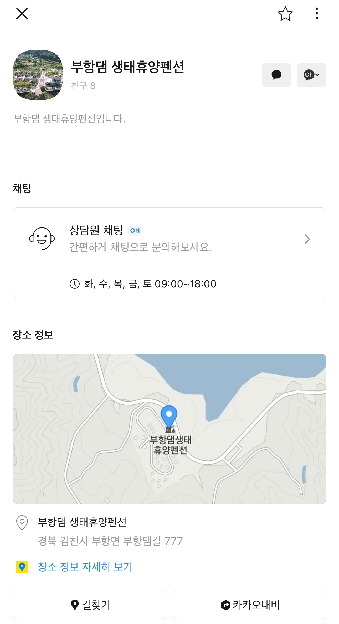 부항댐 생태휴양펜션 카카오톡 채널 개설
