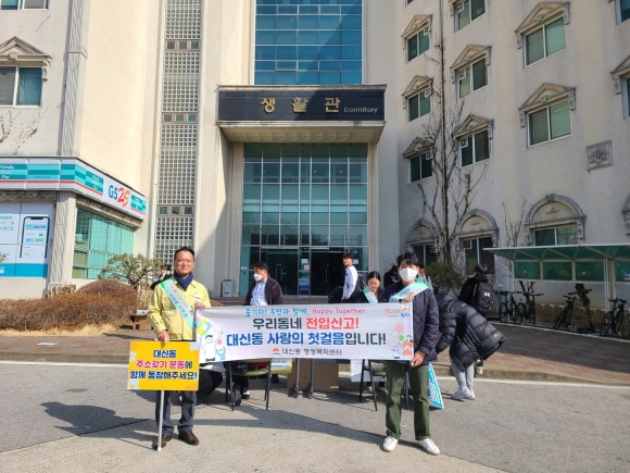 | 김천시 대신동(동장 김해문)은 3월 6일(월) 관내의 김천대학교 생활관 앞에서 미전입 대학생 및 신입생을 대상으로 찾아가는 현장전입반을 운영했다.